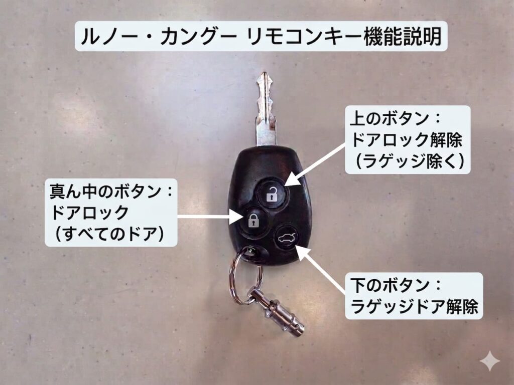 ルノー・カングー(カングー1|コカングー|初代カングー)5MTのリモコンキー操作方法