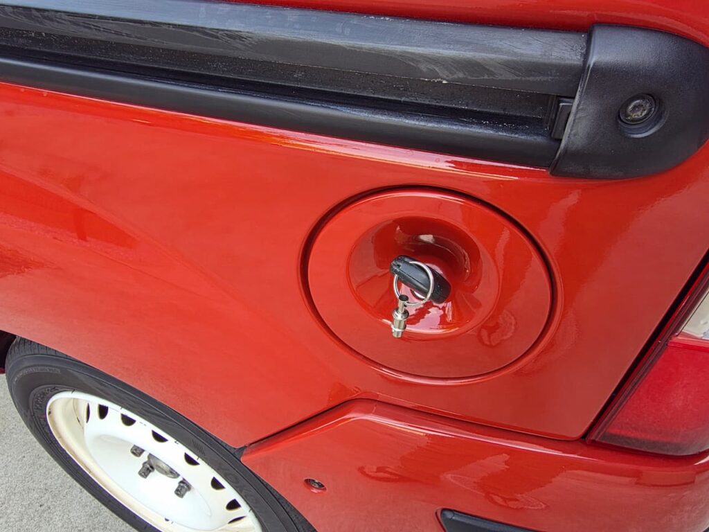 給油口は車のキーを差し込み、左側に回すと開けられます。