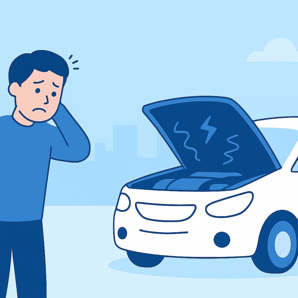 1. 安全な場所に停車:ご自身と同乗者様の安全を確保し、ハザードランプを点灯させて安全な場所に停車し、運転を中止してください。
